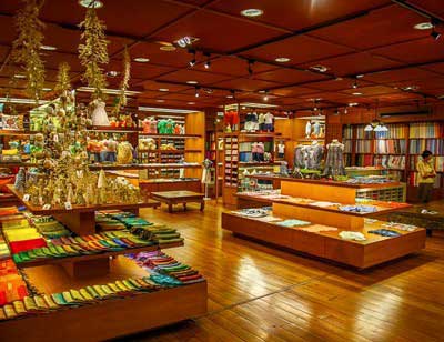 Multistory shopping featuring clothing, mobiles and accessories, jewelry, music, furniture, leather goods, shoes etc.
